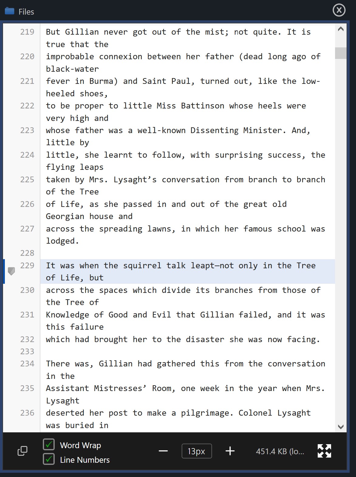 There's a new viewer for text files that supports dynamic loading, meaning it can support very large files. It also supports full screen and there are options for line numbers and word wrap. You can comment on a specific line too.
