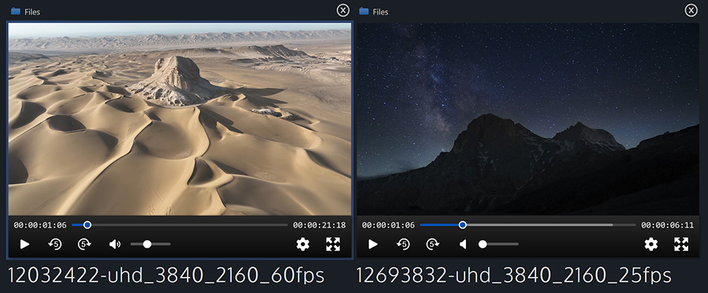You can now load a second file alongside another. You can compare any type of file with another, but if it's the same type it will automatically sync with the other player. Video and audio will sync playheads with each other and switching which file is active will switch audio source. Image viewers will sync zoom and pan position between each other, and document viewers will sync page numbers.